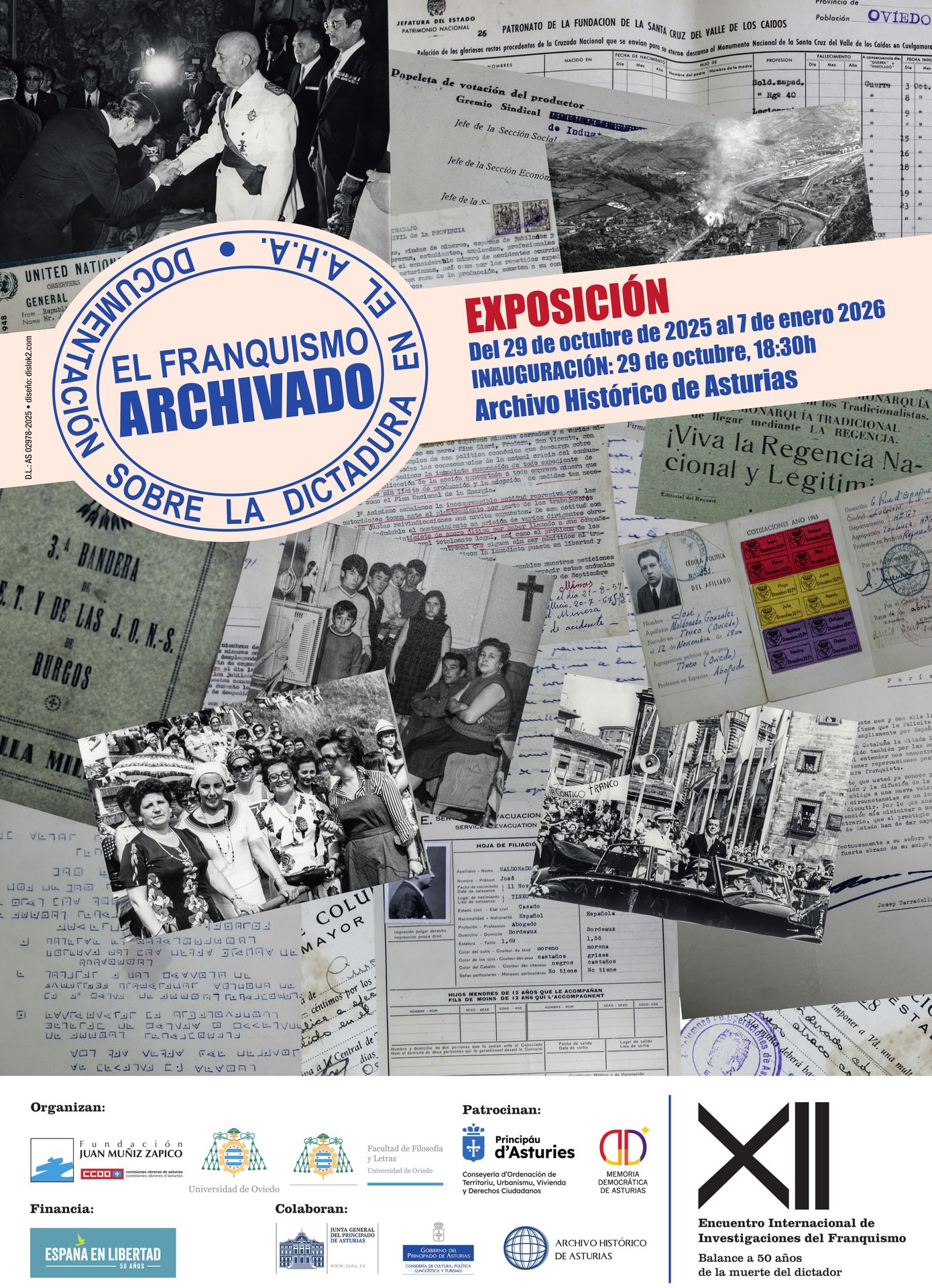 El 29 de octubre se inaugura en el Archivo Histórico de Asturias la exposición "El franquismo archivado", con ocasión de los 50 años de fin de ese régimen. Los 150 documentos que se exhibirán hasta el 7 de enero de 2026 son todos originales que se custodian en nuestro archivo.
